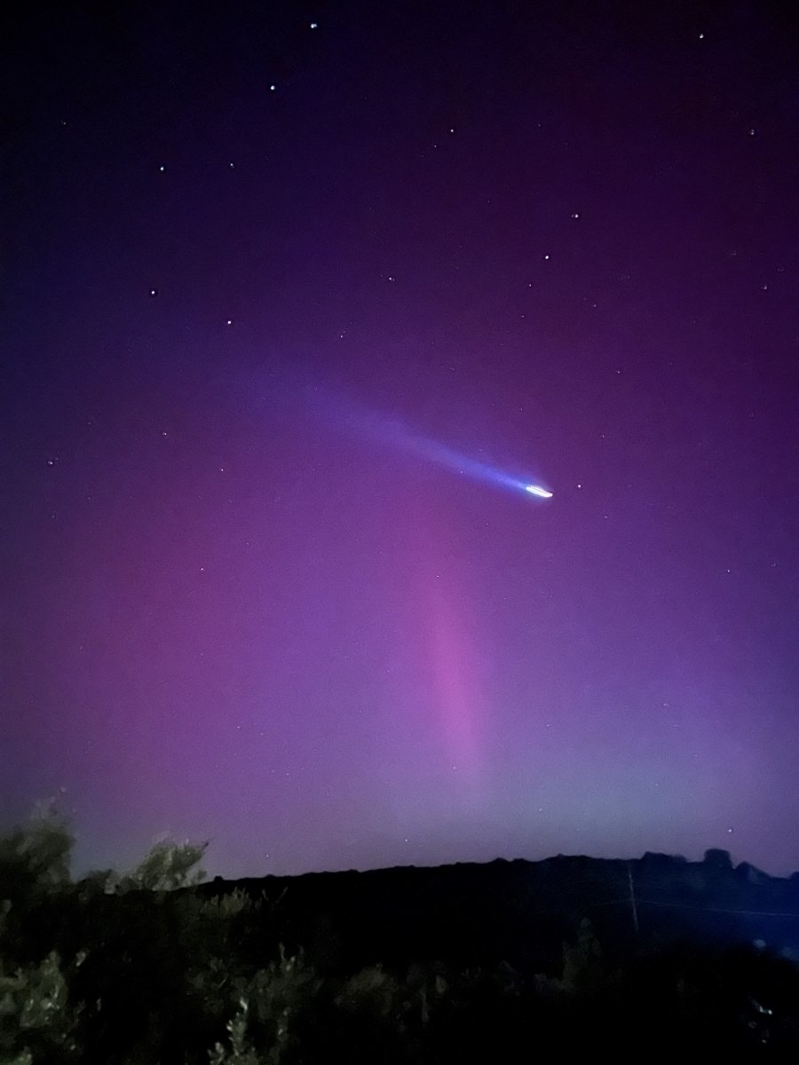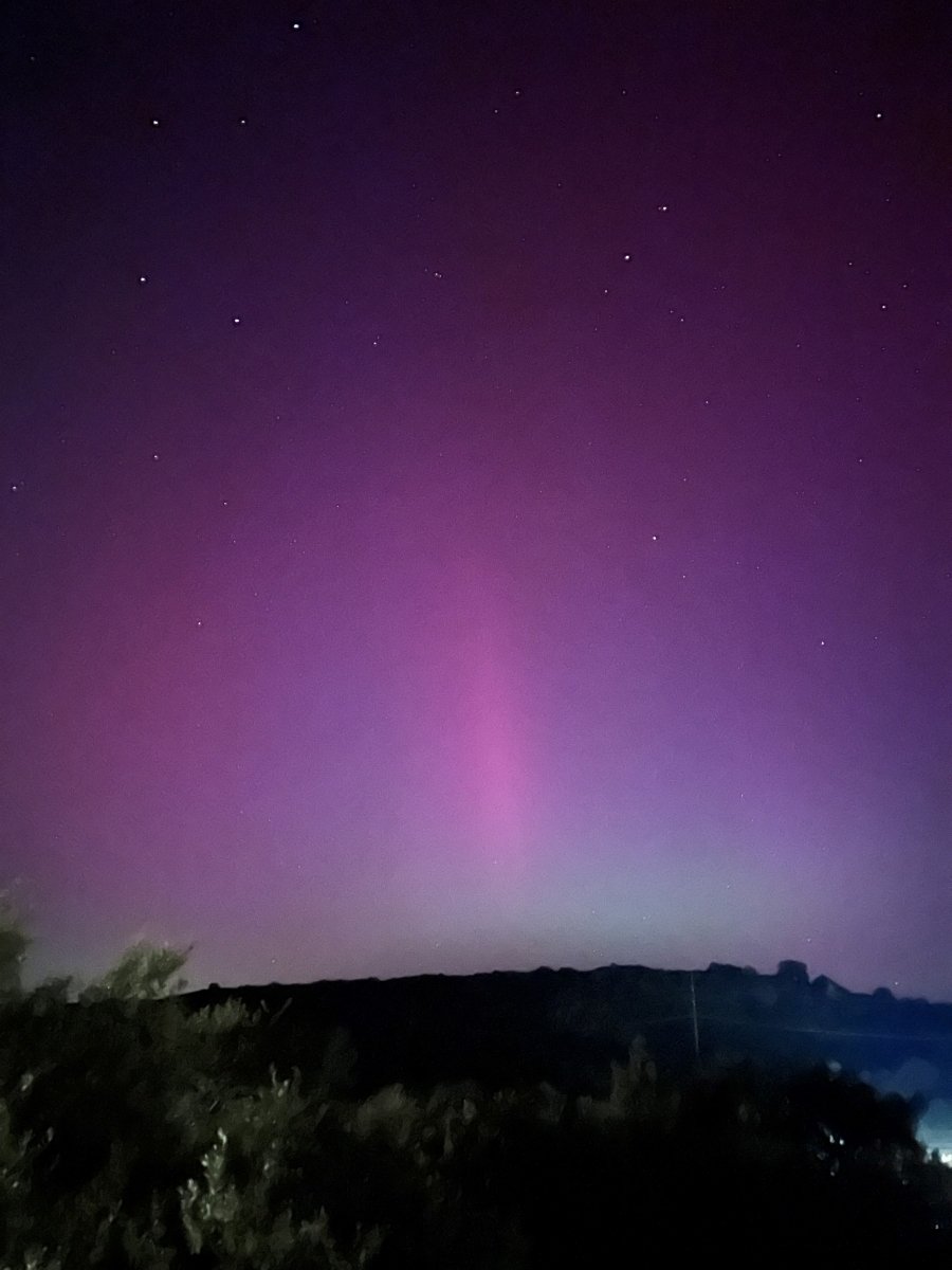 May 12, 2024 (San Diego’s East County) — The Aurora Borealis, or Northern Lights, made a rare but spectacular appearance over San Diego’s East County Friday night, visible in mountain and rural areas dark enough to see the dramatic night sky.