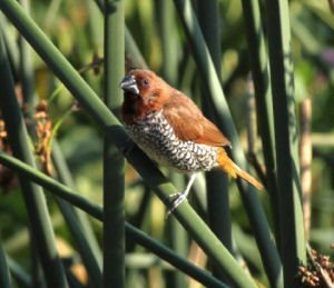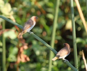 September 24, 2011 (San Diego’s East County) – Photographer Greg Turok snapped these images of a Nutmeg Mannakin, or Spice Finch, and its mate in the Mission Trails Regional Park area Sept. 5.