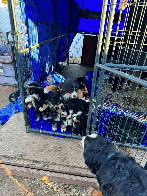 December 20, 2023 (Ramona)—The crew from Cal Fire’s Station 80 rescued nearly 20 animals from a barn fire in Ramona earlier this week, including these adorable puppies.