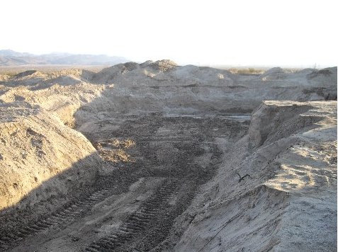 The photo at right shows the excavation for a single massive wind turbine foundation, dwarfing the very same mountains behind when seen in broad daylight.