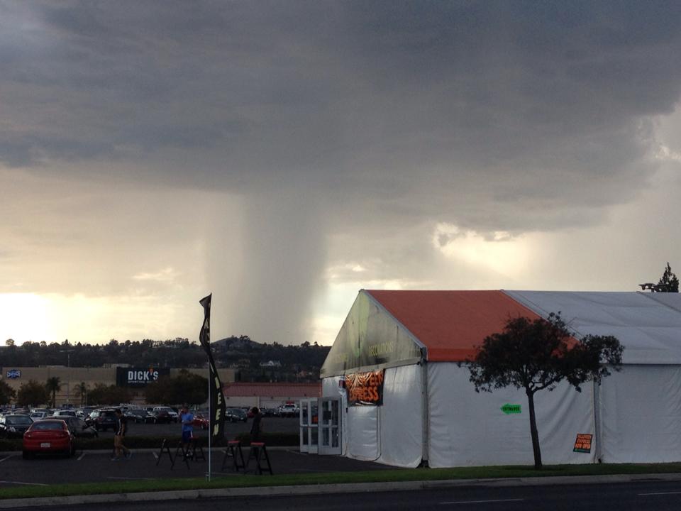 But in some communities, the weather remained clear and calm. Ginny Burnight said she say only a handful of raindrops at her home in Crest. “Although my friends in Rancho San Diego were `Singin’ in the rain,'” she reflects, Crest residents had 105 degree heat with only “pretty white clouds and blue sky.”