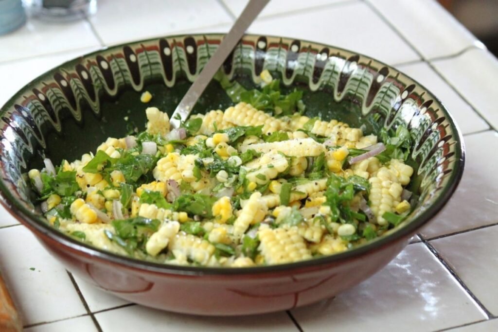 SWEET CORN AND ARUGULA SALAD. This sweet and simple salad is delicious when summer corn is fresh – serve this salad warm or cold.