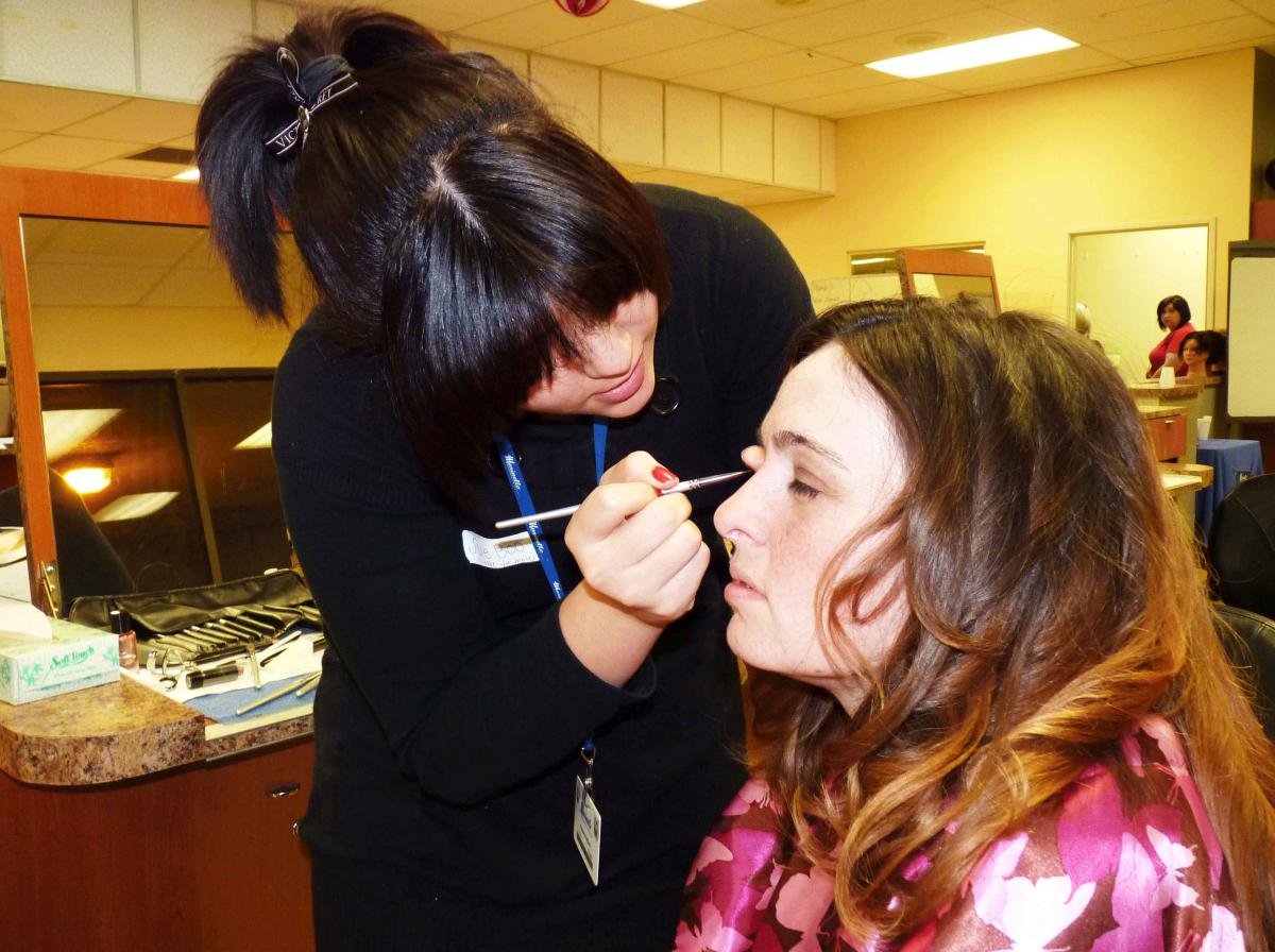 Samantha Vanvalkenburg, a student, is preparing to graduate. “We started by practicing on doll heads,” she recalled of her freshman days, just ten months ago. “It’s real hair, so you can color them and cut them.” Students must log in 1,000 hours before they are allowed to work on guests including customers from the general public, who can walk in or make appointments for beauty services at heavily discounted prices, such as manicures starting at $7.99, eyebrow waxes from $7, haircut and blow dry from $9.95 (long hair costs extra).