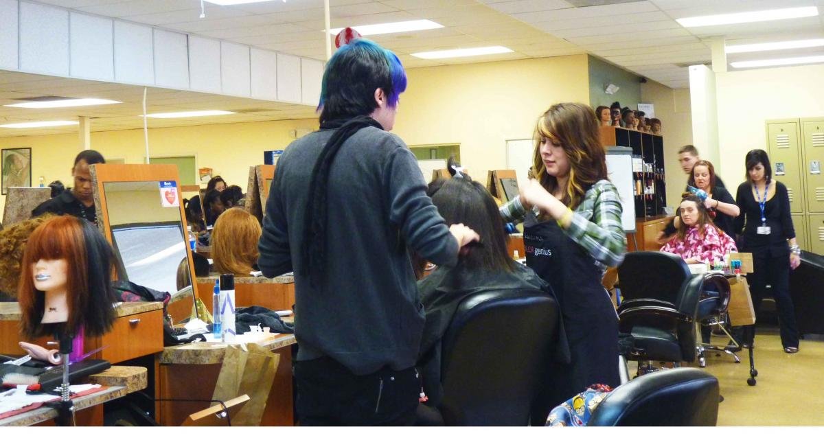 February 9, 2011 (El Cajon) – Students snip, clip, crimp and primp customers at Marinello School of Beauty in El Cajon—all in preparation for careers in the beauty industry.