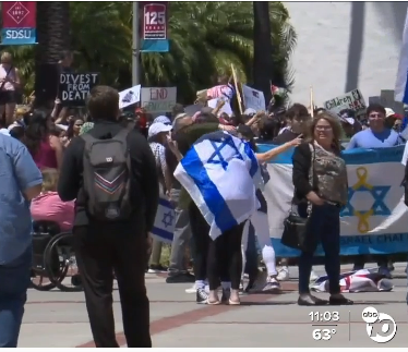 May 9, 2024 (San Diego) – Across the nation, campus protests have erupted over the war raging in the Middle East, including a large march at San Diego State University and an encampment at the University of California locally, the latter ending in arrests.