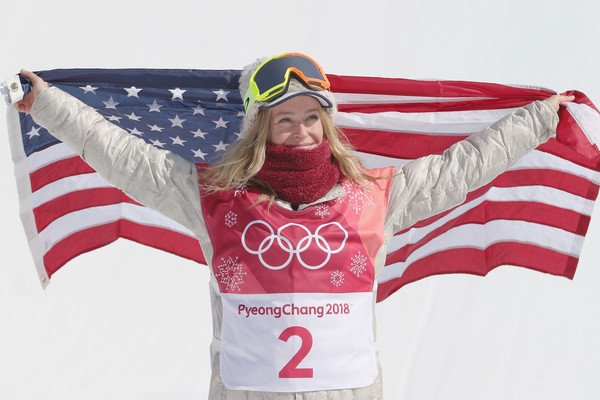 Photo, left: Silver medalist Jamie Anderson of the United States celebrates during the victory ceremony after the Snowboard – Ladies’ Big Air Final on day 13 of the PyeongChang 2018 Winter Olympic Games at Phoenix Snow Park on February 22, 2018 in Pyeongchang-gun, South Korea. Via Zimbio