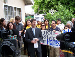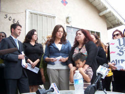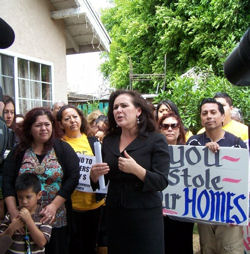 Filner said that most foreclosures are illegal. But working families struggling to keep their homes cannot afford to fight. He said that the City needed to provide an office of advocacy for homeowners to fight illegal foreclosure and said San Diego should “put money into homes not banks.” Filner commended the crowd for helping their neighbors saying “we are all in this together.” The gathering chanted “si