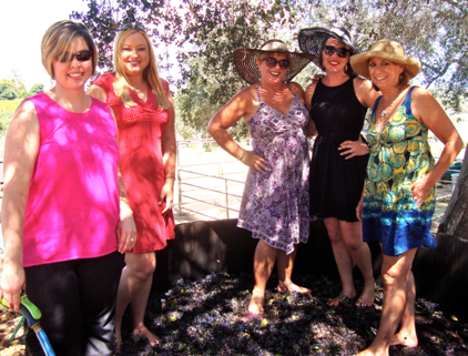 September 7, 2015 (Ramona) — Members of the Hacienda de las Rosas Winery’s wine club kicked up their heels on Labor Day at the winery’s 8th annual grape stomp. The occasion also marked the grand reopening of the winery, which was closed over the summer following the death last winter of winemaker William Holzhaur.