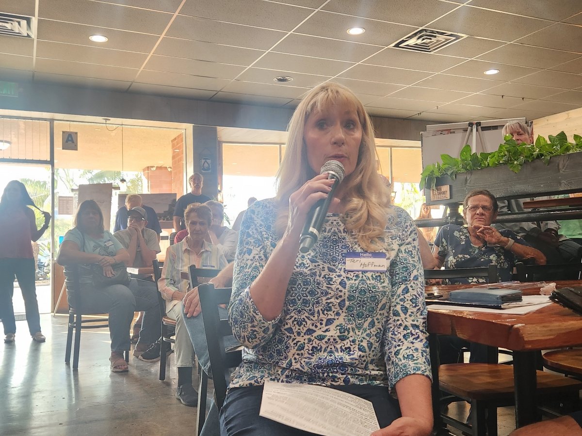 Nearly 100 people packed the cozy coffeehouse to register concern, and more than 20 people directed questions and concerns to Lothian, City of La Mesa Development Director Lynette Santos, Heartland Fire & Rescue Fire Marshall Kenneth King and Koch.