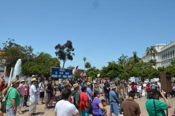 July 5, 2013 (San Diego)—Several hundred people from across San Diego County, including East County residents, held a rally and march through Balboa Park to the National Security Agency (NSA) surveillance of Americans’ phone and internet records.