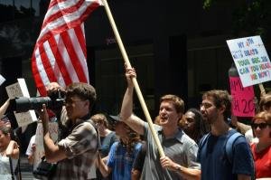 The mood at the park was a mixture of anger at the actions of the Federal Government, and a celebration of the Fourth. The rally proper started with a wonderful rendition of the National Anthem by Joules Landis.