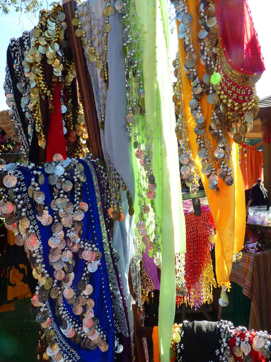 For those seeking to participate in future Renaissance events, booths offered period clothing attire and other items such as corsets , tri-corn hats, elaborately embroidered gowns, swords, armor, leather gauntlets, and gypsy scarves trimmed with coins. One booth offered elegant rings at three for a dollar. Others offered authentic reproduction items for hundreds of dollars or more.