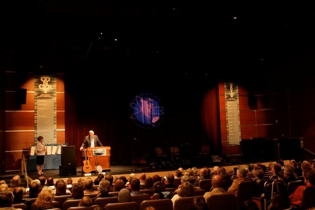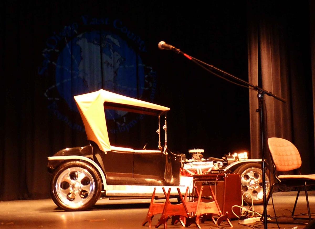 June 22, 2010 (El Cajon) – A full house packed a benefit concert held at Cuyamaca College to support shop programs at local high schools—including a guitar-making course and a class in which students rebuilt a classic roadster car. World-famous musicians Doyle Dykes and his daughter, Haley performed, along with the famed Kruger Brothers.