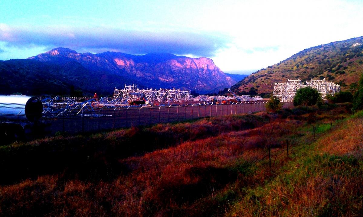 “As you can see, these will be a blight across the face of El Cap Mountain,” said Milt Cyphert in an e-mail sent to East County Magazine. Cyphert, cofounder of the East County Community Action Coalition which has filed a lawsuit seeking to halt Powerlink construction, also included a photo which makes clear that the towers, awaiting installation in a fly yard at the base of El Capitan, stand out like a sea of sore thumbs—each casting glaring reflections of the setting sun.