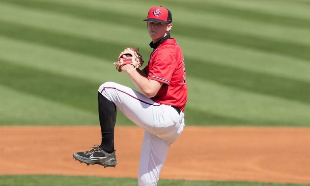 April 8, 2022 (San Diego) – San Diego State’s Troy Melton struck out a career-high 10 batters on Friday, but it wasn’t enough, as the Aztecs fell victim to visiting San José State 4-0 in the opener of a Mountain West series at Tony Gwynn Stadium.