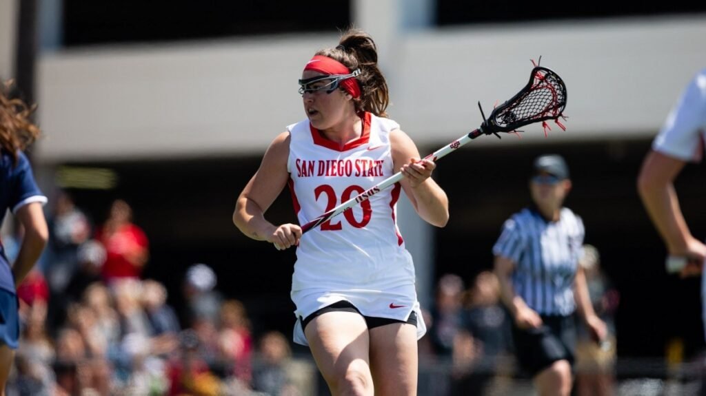 April 27, 2019 (Davis) – Seniors Harlowe Steele and Kirstie Greenlaw tied their career highs with five goals apiece to lead the San Diego State lacrosse team to an 18-15 triumph over Fresno State in the semifinals of the Mountain Pacific Sports Federation Championships Friday night inside Aggie Stadium.