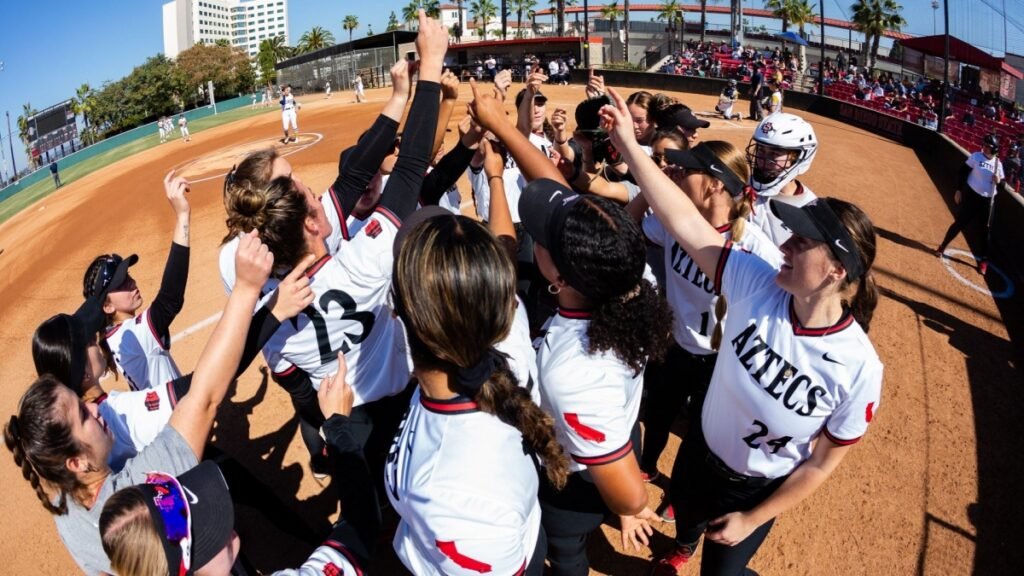 The Aztecs tied it in the bottom of the fifth when Brocki hit a one-out triple to right-center field and scored on a fielder’s choice by Jillian Celis. Celis promptly stole second and advanced to third on an infield single by Alexa Schultz, but Brigham Young starter Autumn Moffat-Korth struck out Mac Barbara swinging and got Danielle Romanello to ground out to third base to keep the game tied at 1-1.