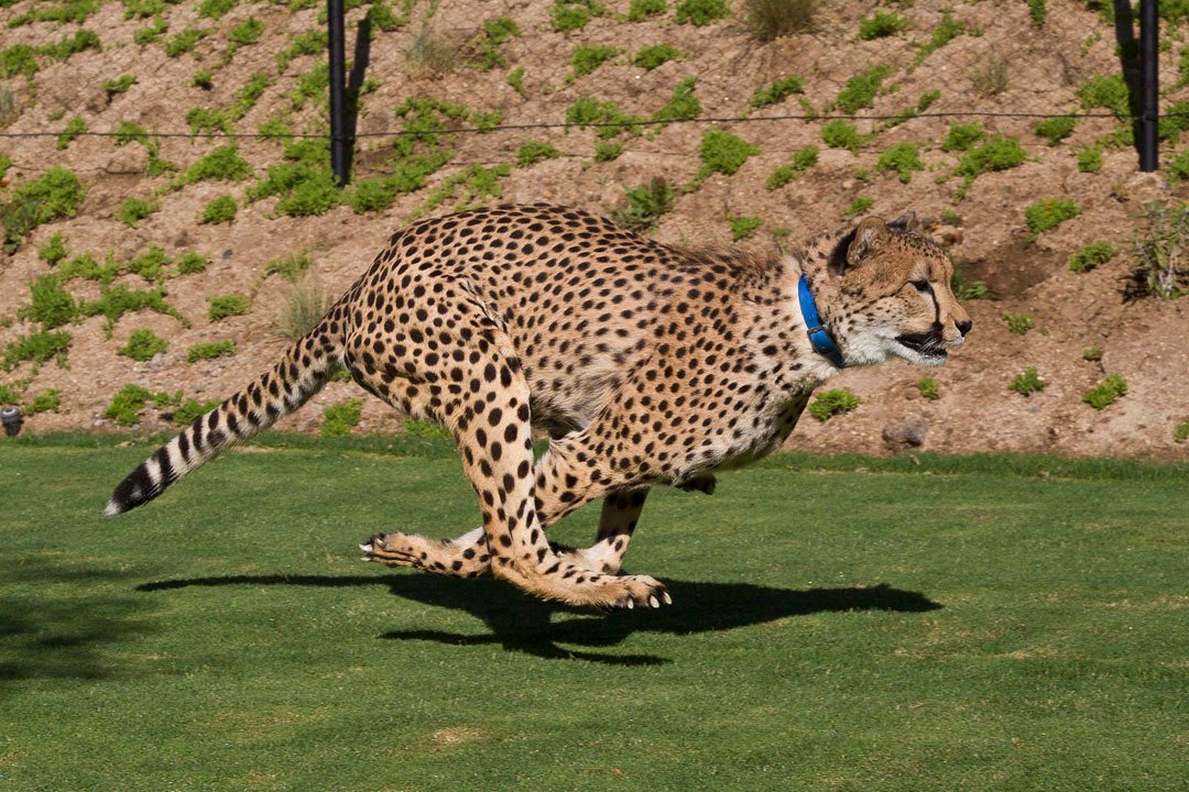 Shiley, one of 23 cheetahs at the park, is named after Darlene Shiley, a local philanthropist who helped make Cheetah Run possible. has forged a friendship with an Andalusian shepherd dog raised with the endangered feline. The dog, Yeti, runs the 300-foot long track first, providing encouragement to Shiley. Lean and muscular, the big cat completes his run in seconds – so don’t blink or you'll miss out on the action!