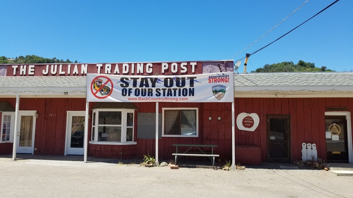 Photo, left: A Julian business posted a banner opposing Cal Fire moving into the former Julian Volunteer Firefighters’ station.)