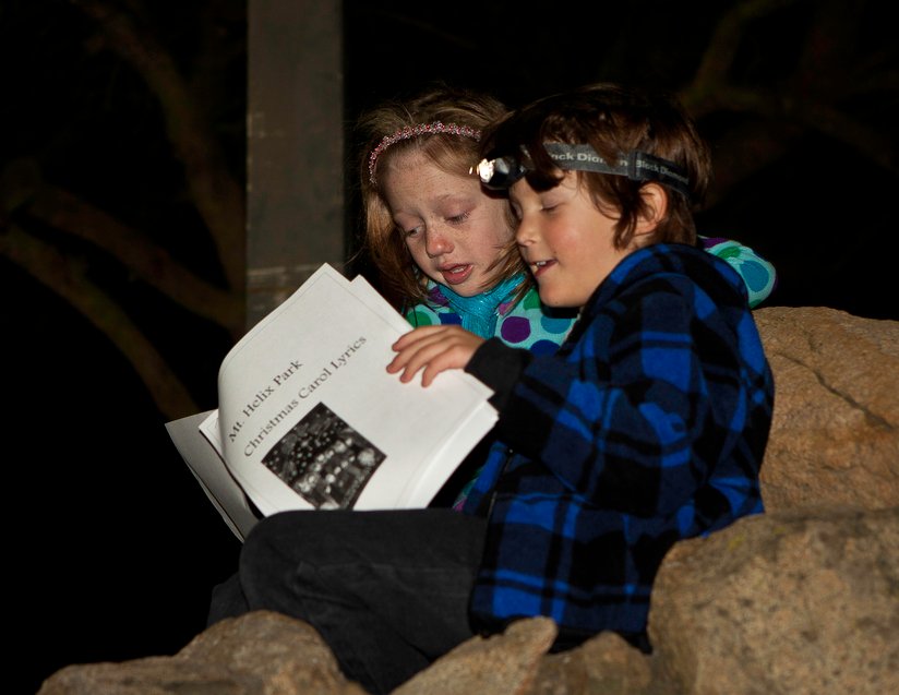 November 25, 2012 (La Mesa) – Sounds of the season will emanate from the Mt. Helix Park Amphitheatre on December 16 from 6:30 – 8:00 p.m. during the annual Sing-along Christmas Caroling event. Gina Seashore, known locally as That Music Lady, will be leading the caroling with her regular group of musicians.