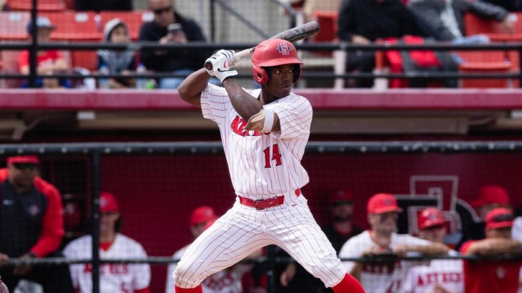 The Aztecs took a 2-1 lead in the fourth when Poncho Ruiz narrowly avoided the tag at the plate on Brian Leonhardt’s sacrifice fly. Previously, Ruiz led off with a single and advanced to third after Carrigg beat out an infield hit, and the late-arriving throw was mishandled by Zimmerman at first.