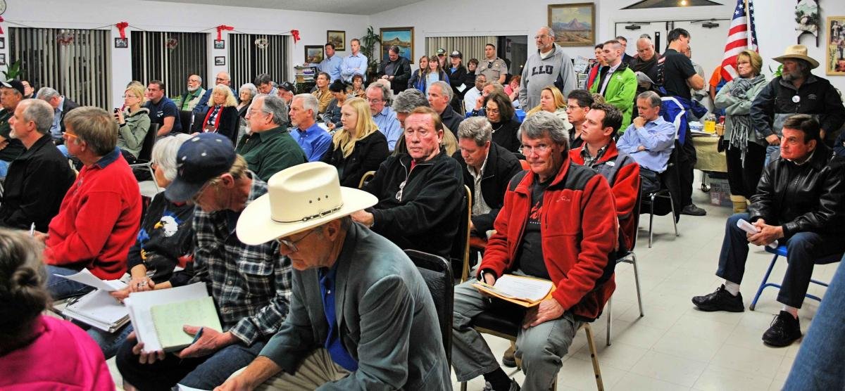 The public hearing in Jacumba was called to order promptly at 6 p.m. with over 80 residents, business owners, PUC officials, and those who work in the energy industry. Two CHP officers were on hand to maintain good order and discipline.