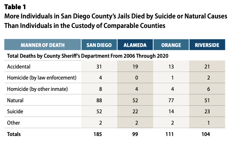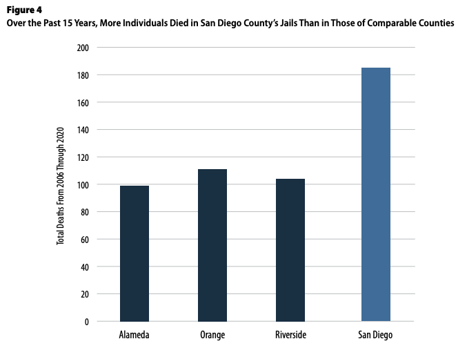 “The high rate of deaths in San Diego County’s jails compared to other counties raises concerns about underlying systemic issues with the Sheriff’s Department’s policies and practices,” the audit says.