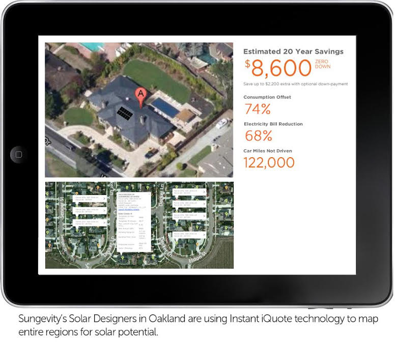 According to Sungevity’s Chief Technical Officer, Steve Atherton, “We have taken our years of experience of people using our RSD tool to design hundreds of thousands of systems and using LIDAR data … and a lot of very specific software and technology, we can basically now design systems at city scale, state scale and potentially country scale.”