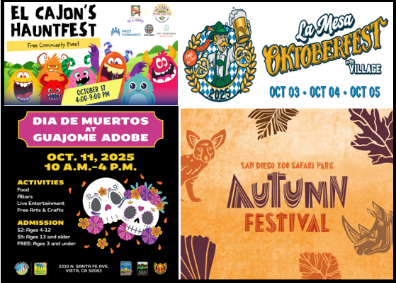 East County News Service September 17, 2025 (San Diego’s East County) — October brings Oktoberfest celebrations in La Mesa and El Cajon and Borrego Days in the desert, as well as an array of spooky events such as a haunted circus, haunted trails in county parks, a Day of the Dead celebration, Hauntfest on Main […]