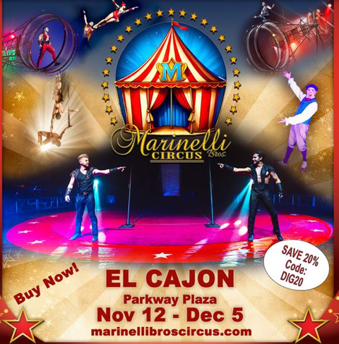 East County News Service November 6, 2025 (El Cajon) – A brand new circus is coming to San Diego’s East County. The Marinelli Brothers Circus brings its brand-new production titled “A New Experience”, bringing its signature mix of magic, heart-pounding excitement, and family fun to Parkway Plaza November 12 – December 5. An entertaining […]