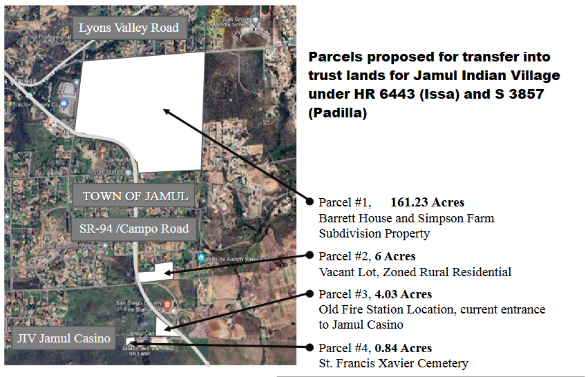 BILLS PROPOSE ADDING 172 ACRES IN TRUST FOR JAMUL INDIAN VILLAGE