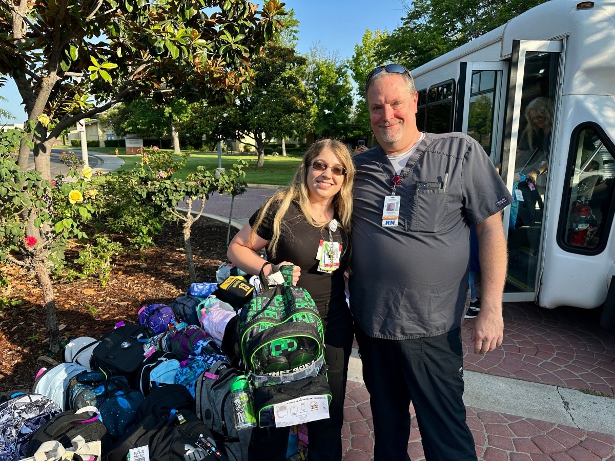 July 26, 2024 (La Mesa) — Sharp Grossmont Hospital held its annual backpack drive today to support local students impacted by HIV and AIDS as they get ready to go back to school. This year, nurses and hospital staff sponsored 75 children by donating backpacks filled with school supplies, ranging from crayons and glue sticks to graphing calculators and planners.