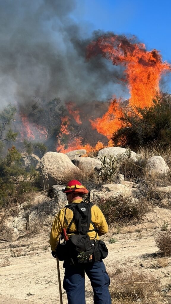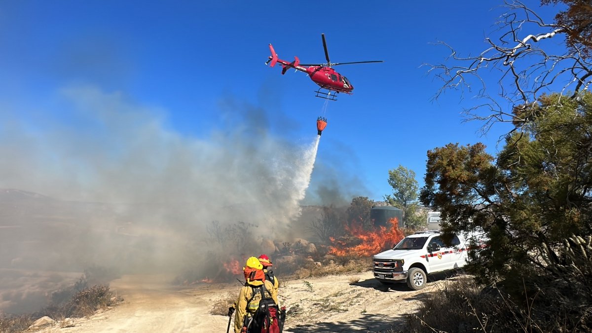 October 31, 2023 (Aguanga) – Evacuation orders have been issued for an estimated 4,000 residents of 1,300 homes due to the Highland Fire in Aguanga, within a few miles of the San Diego County line in Riverside County.  At least three structures have been destroyed and six others damaged, according to Riverside Fire Department spokesperson Jeff La Russo.