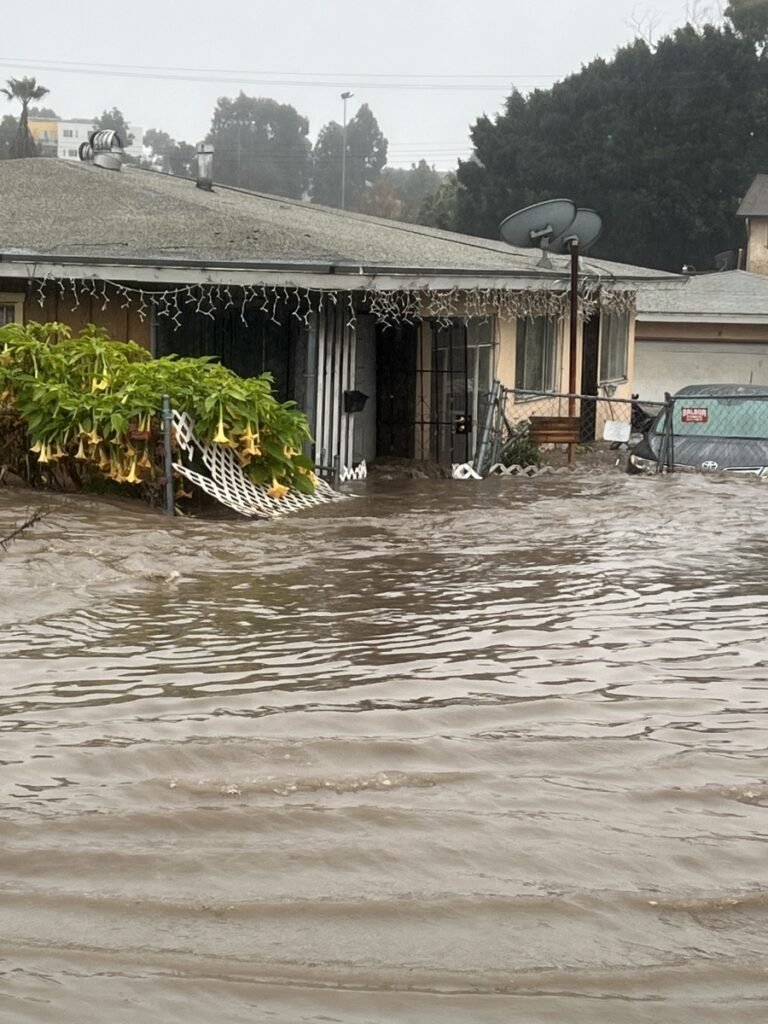February 1, 2024 (Spring Valley)– When 86-year old Bienvenida Ford felt the water on her feet January 22, all she could do was yell for her sleeping daughter, Debbie, who jumped up and called 911. But by then, the waters rushing in from the swollen Chollas Creek were already up to the women’s calves.