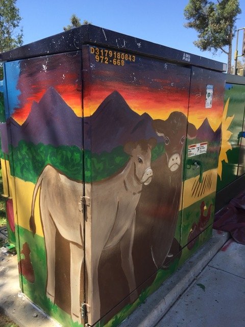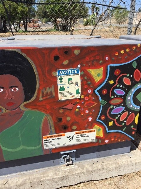 September 11, 2018 (Ramona) — Check out two utility boxes turned into art at 4th and Main across from the Ramona Valley Inn by Lourans Mikhail and another at 14th and Main, facing 14th  next to Dunkin Donuts, by Marie Bravo.