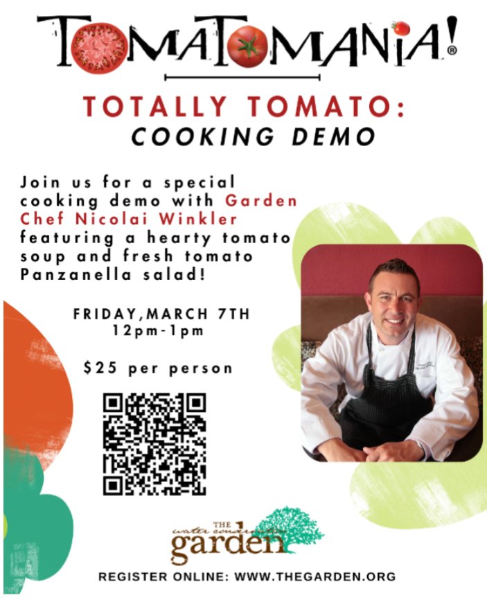 Admission to Tomatomania is free, though there is a $25 charge to reserve space in the “Totally Tomato Cooking Demonstration” on March 7 from 12-1 p.m. Garden chef and instructor Nicolai Winkler will showcase tomato soup paired with a fresh tomato Panzanella salad. Class includes a personal portion of soup and salad, take-home recipe and up-close demonstration. REGISTER HEREYou can also sign up for a free workshop titled “That’s Swale” on March 8 from 10-11 a.m. with Eric Saline of Wild Made Design. Soil is the most efficient water storage you can have on your property, and building good healthy soil benefits every level of a garden ecosystem. Before you install plants, rain tanks, and grey water systems, be sure your landscape is designed to handle and harvest as much water as possible – passively. REGISTER HERE