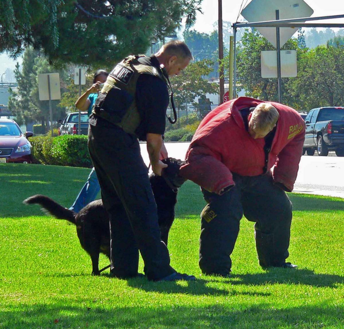 Officer James Bray, K-9 handler for the El Cajon Police Department, presented a K-9 demonstration complete with an attack by Wilco, a Belgian Malenious.
