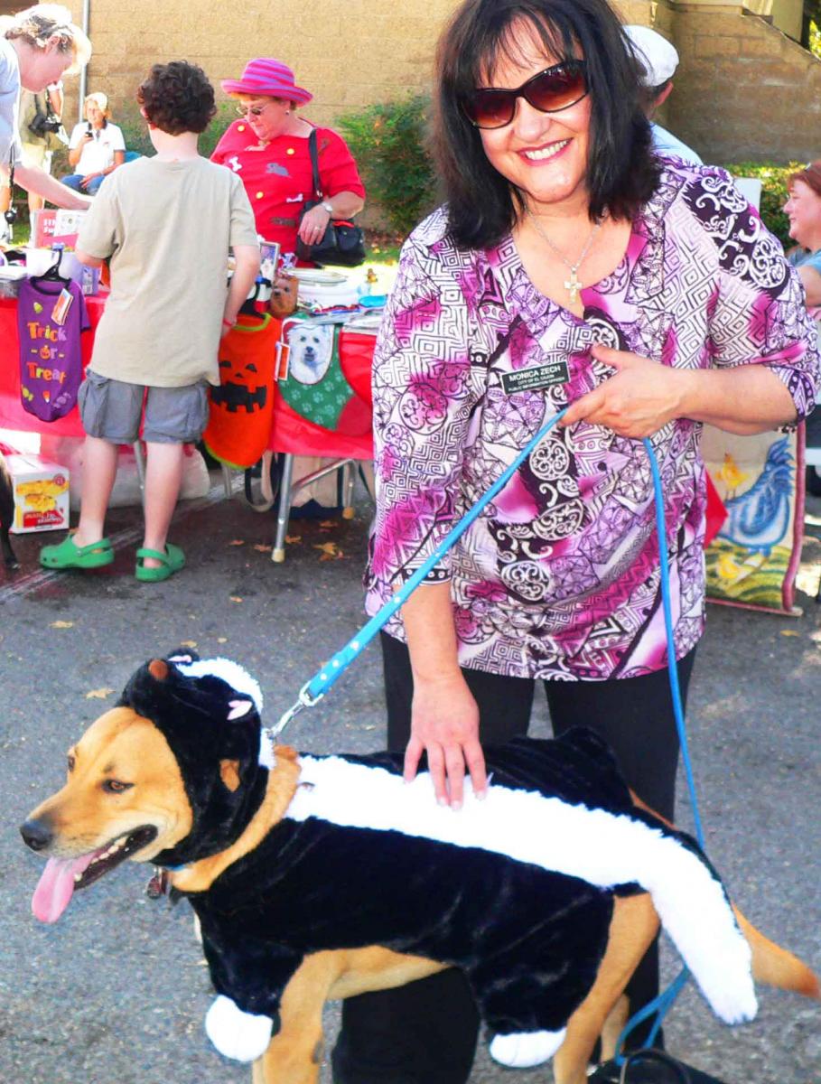 Even City spokesperson Monica Zech got into the Halloween spirit, bringing her own dog, Romeo, a Labrador-mix clad in a skunk costume. Romeo was also a former shelter dog, Zech said.