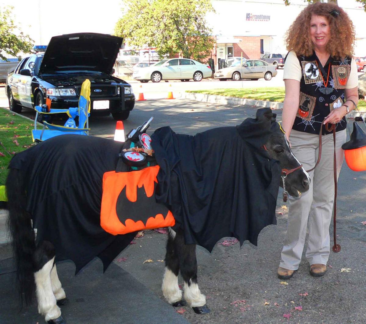 Stormy, a pony owned by Lori Roberts of Blossom Valley, delighted youngsters present with a Batman costume.