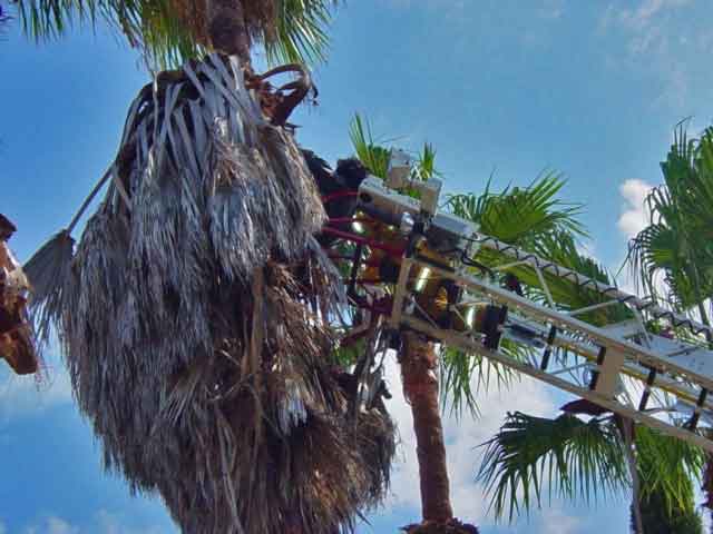 Fire officials remind residents that the trimming of a large buildup of dead palm fronds can be extremely dangerous, work best left to professionals. However even professionals need to be reminded to drop the cuttings as they go, so there will be no life threatening buildup