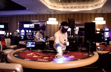 Printer-friendly version By Helen Horvath Photo, left: Worker sanitize chips, cards and table with UV lighting; screenshot from Viejas video On May 18, 2020, the Viejas tribe took the bold