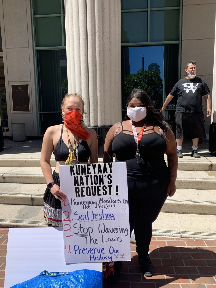 Printer-friendly versionBy Briana Gomez Photo: Brooke Baines, left, Manzanita nation and Cynthia Parada, right, tribal councilwoman, La Posta Band of Mission Indians July 6, 2020 (San Diego) – Approximately 200 people