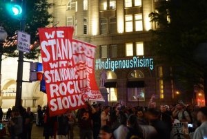 NATIVE NATIONS PROTEST OUTSIDE TRUMP HOTEL, SHUT DOWN PENNSYLVANIA AVE. IN ROUND DANCE