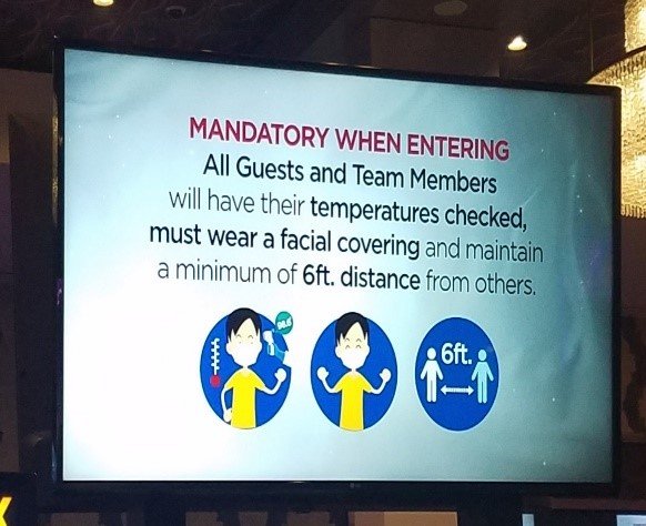 One of the fears of many potential guests is the possibility of contracting COVID-19 by entering the casino. Throughout the casino were reminders describing the Casino management policies to ensure customer and employee safety. Failure to adhere to the mandatory requirements could potentially cause guests to be asked to leave.