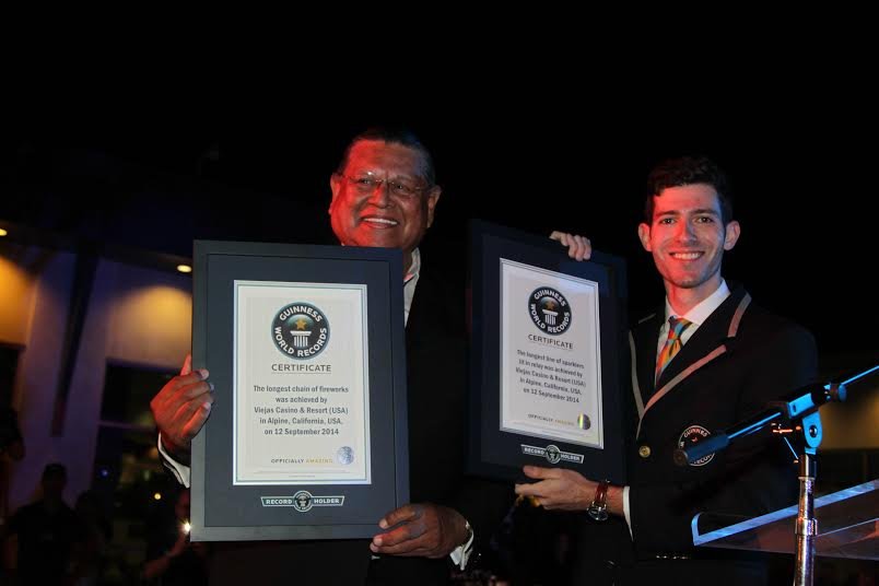 September 18,2014 (Alpine)– Viejas Casino & Resort set two new Guinness World Records today – for World’s Longest Sparkler Relay and World’s Longest Chain of Fireworks.