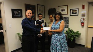 The Battalion Commanding Officer, Cadet Commander Brandon Yarbrough and Cadet Lieutenant Tia Wilson, Battalion Operations Officer, joined Ms. Schweitzer in receiving the much appreciated donation.
