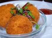 We started with two appetizers. The Butternut squash sautéed ravioli with fennel cream and truffle oil was so delightfully decadent that one could easily content oneself with this and a small salad. The other, Mac and Cheese Croquettes, was bland for our tastes, served with an Alfredo sauce and cold Marinara.