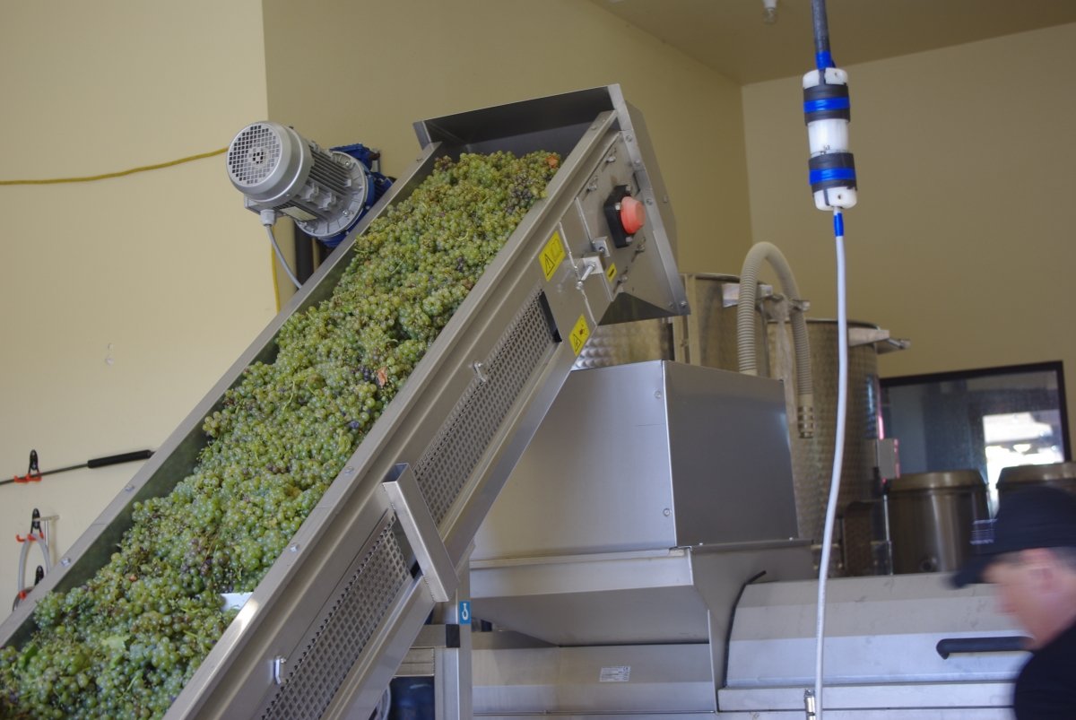 Step 2-Preparing the Machinery. Most of the processing machinery is crafted in Italy and is stainless steel. All of these machines are rinsed with water and the processing room has an array of valves, hoses and parts that are production equipment. The gross weight picked totaled 950 lbs. of grapes.