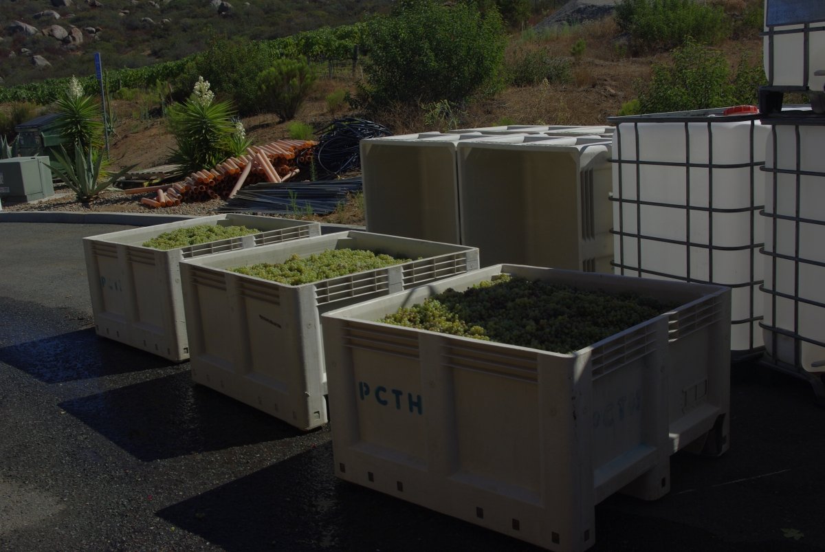On the table in the dark, I observed gloves, headlamps and snips for the harvesters. Each person had a five-gallon bucket. At one end of the vineyard were three large bins where the buckets would be emptied during stage one of the harvest.