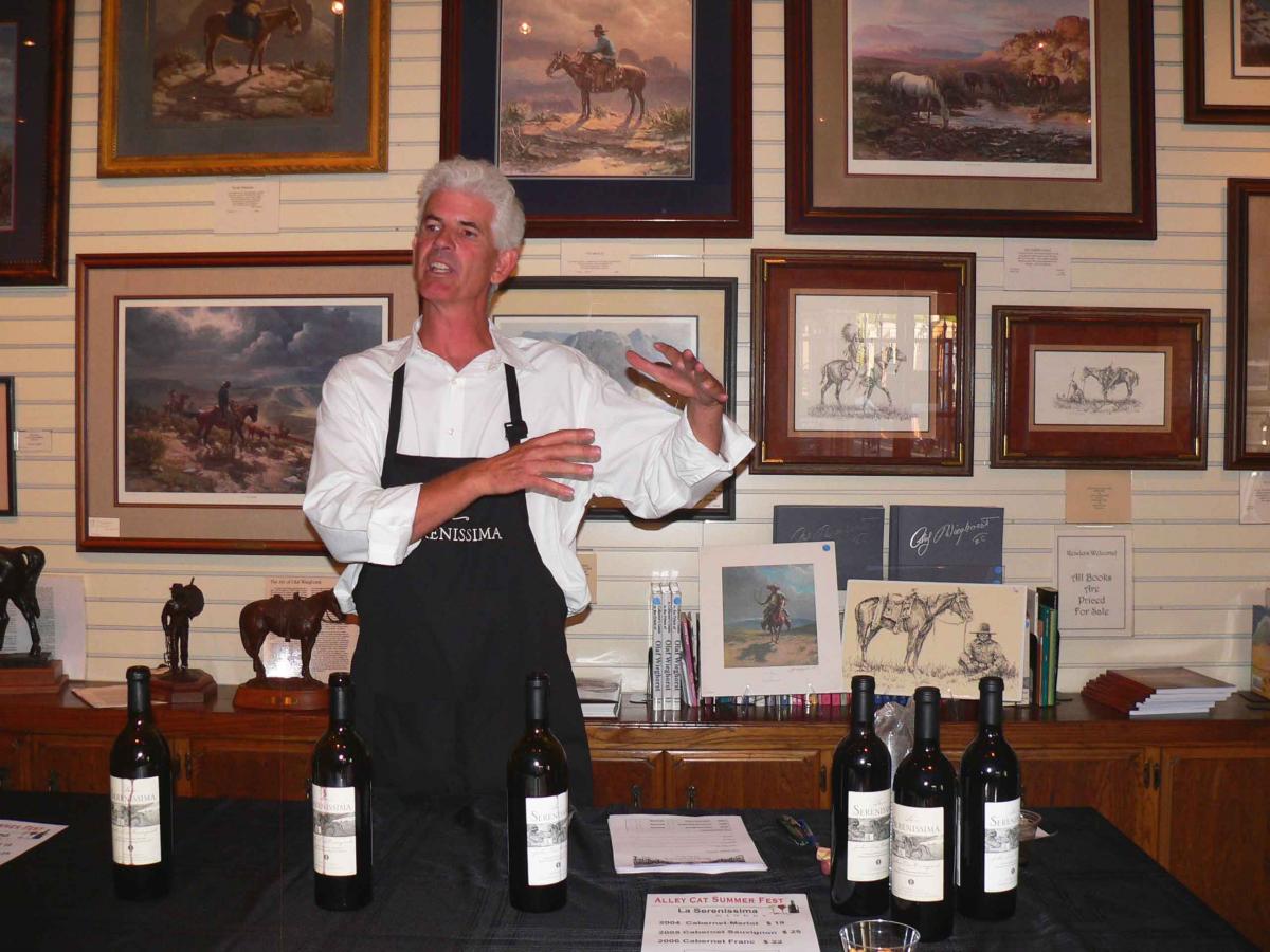 At the Olaf Wieghorst Museum of Western Art, vintner Anthony Tiso from La Serenissima in Warner Springs poured samples of a variety of wines (photo, top of article). My favorite: a cabernet-sauvignon, though the cabernet franc was a close second. All are estate grown, meaning bottled from grapes grown at the winery.